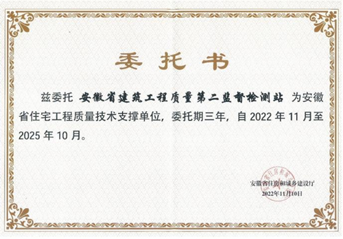 為深入學(xué)習貫徹黨的二十大精神,聚焦化解住宅工程質(zhì)量問(wèn)題,11月10日,由安徽省住房和城鄉建設廳舉辦的“全省住宅工程高質(zhì)量發(fā)展工作推進(jìn)會(huì )暨安徽省住宅工程質(zhì)量專(zhuān)家委員會(huì )成立授牌”在肥順利召開(kāi),會(huì )上公布成立了“安徽省住宅工程質(zhì)量專(zhuān)家委員會(huì )”(以下簡(jiǎn)稱(chēng)“專(zhuān)家委員會(huì )”),授予了質(zhì)檢二站“安徽省住宅工程質(zhì)量技術(shù)支撐單位”證書(shū)。
