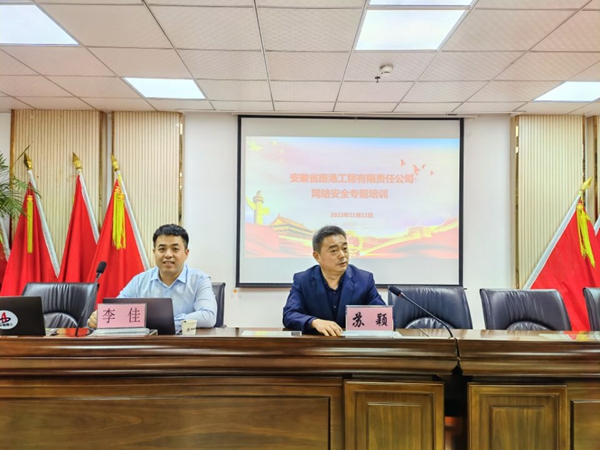 為提升公司全員網(wǎng)絡(luò )安全意識,進(jìn)一步加強公司網(wǎng)絡(luò )信息安全建設,公司于11月11日舉辦了2022年網(wǎng)絡(luò )安全培訓班,機關(guān)全體職工及在肥分子公司信息化專(zhuān)員參加培訓。公司黨委委員、副總經(jīng)理、總工程師蘇穎作開(kāi)班講話(huà)。