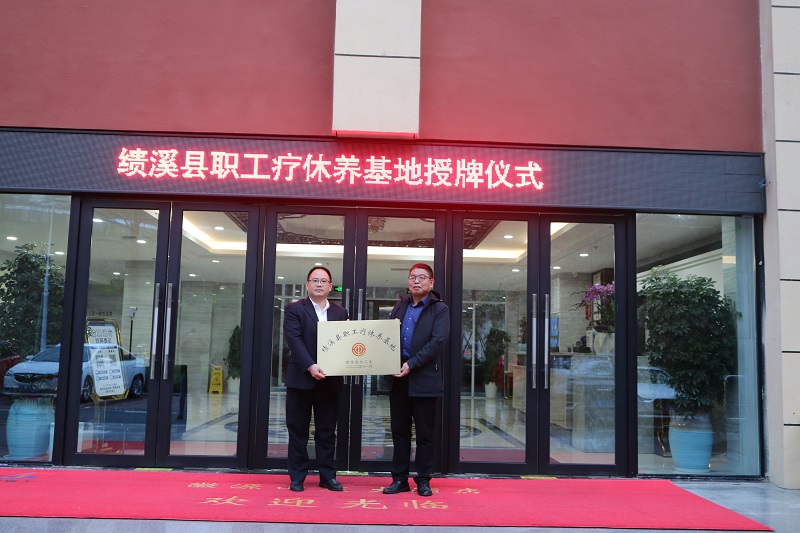 11月21日下午,績(jì)溪縣總工會(huì )為安建投資安徽建工徽源山莊酒店舉行“績(jì)溪縣職工療休養基地”授牌儀式,績(jì)溪縣總工會(huì )黨組書(shū)記、副主席黃望軍出席授牌儀式。