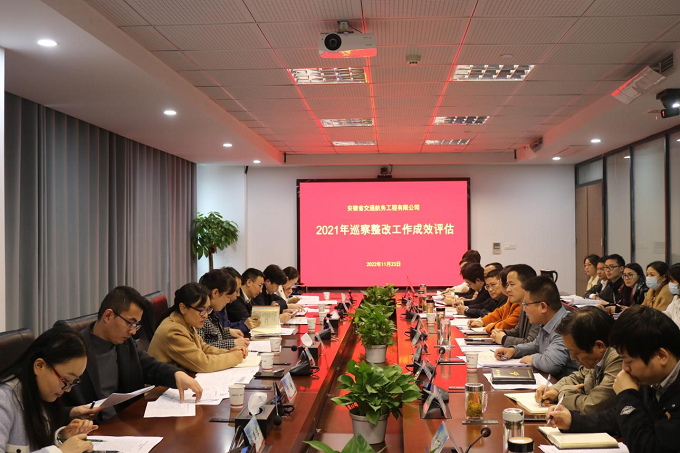 為進(jìn)一步鞏固巡察整改工作成果,壓實(shí)被巡察單位整改主體責任,11月23日下午,集團紀委機關(guān)、黨委工作部、巡察辦、巡察組4個(gè)部門(mén)和機構組成評估檢查小組,對安徽交航黨委2021年巡察整改工作成效進(jìn)行現場(chǎng)評估。安徽交航巡察整改工作領(lǐng)導小組副組長(cháng)黃國平及機關(guān)各部門(mén)負責人參加會(huì )議。