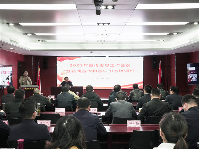 會(huì )議指出,過(guò)去一年,公司宣傳思想工作以習近平新時(shí)代中國特色社會(huì )主義思想為引領(lǐng),以迎接、宣傳、貫徹黨的二十大為主線(xiàn),聚焦舉旗幟、聚民心、育新人、興文化、展形象的使命任務(wù),圍繞中心、服務(wù)大局,主動(dòng)作為、奮發(fā)進(jìn)取,以政治建設為統領(lǐng),理論武裝入腦入心;以百花齊放為目標,宣傳工作出新出彩;以落實(shí)責任為核心,意識形態(tài)應對有效;以服務(wù)大局為導向,文化活動(dòng)多姿多彩,取得了卓有成效的工作成績(jì),為加快“百億路橋集團”建設提供堅強思想保證和強大精神力量。