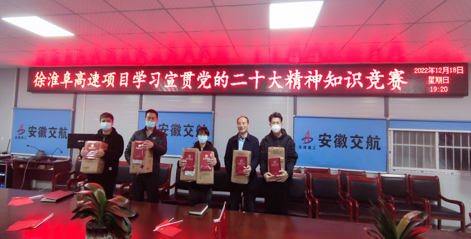 為深入學(xué)習貫徹黨的二十大精神,以“競”激發(fā)學(xué)習熱情,以“賽”堅定忠誠信念,達到以賽促學(xué)效果。近日,徐淮阜高速項目黨支部開(kāi)展了“學(xué)習黨的二十大 砥礪奮進(jìn)新征程”主題黨日暨知識競賽活動(dòng)。