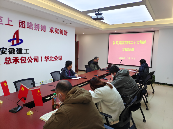 安建總承包華東、華南、華北等三個(gè)省外區域公司貫徹上級黨委部署,營(yíng)造學(xué)習宣貫黨的二十大精神的濃厚氛圍,以實(shí)際行動(dòng)沖刺十二月打好收尾戰,推動(dòng)大會(huì )精神落地見(jiàn)效。