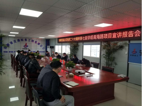 安徽交航公司機關(guān)有關(guān)部門(mén)負責人、第三工程公司黨支部書(shū)記、機關(guān)部分職工、青海路項目職工、瑤海雨污項目職工現場(chǎng)參加宣講,運河新城項目職工視頻參會(huì )。