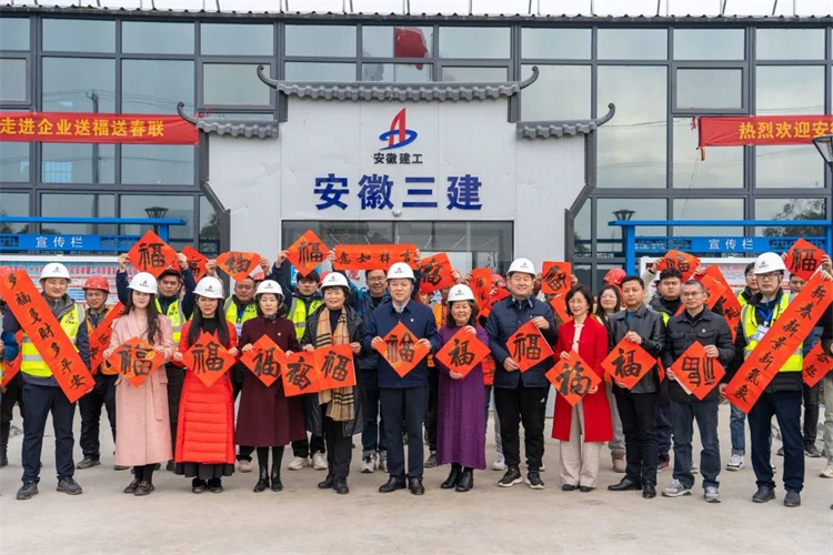 安徽三建裝飾公司和十一公司在合肥一中淝河項目部聯(lián)合開(kāi)展“手寫(xiě)春聯(lián)送溫暖,濃濃墨香迎新春”活動(dòng),安徽省女書(shū)法家協(xié)會(huì )主席陳萍,安徽三建黨委書(shū)記、董事長(cháng)何洪春參加活動(dòng)。