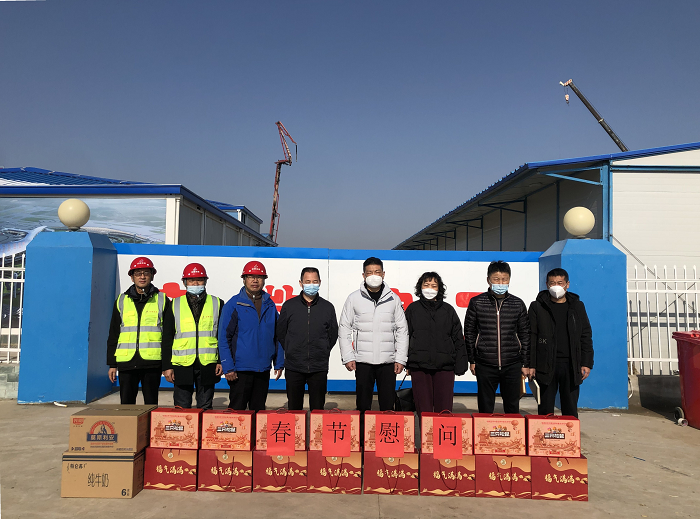 胡六中一行實(shí)地查看了項目施工情況,仔細向項目經(jīng)理魯會(huì )詢(xún)問(wèn)項目建設整體進(jìn)展,向臨近春節一直奮戰在項目一線(xiàn)的工程人員表示誠摯的慰問(wèn)。