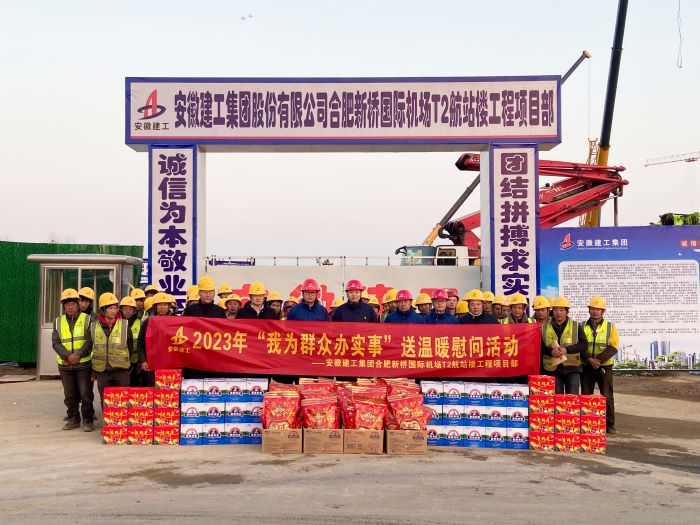 春節將至,歲寒情暖。元月17日下午,合肥新橋國際機場(chǎng)T2航站樓項目部開(kāi)展2023年“我為群眾辦實(shí)事”送溫暖慰問(wèn)活動(dòng),為堅守一線(xiàn)奮戰在寒冬臘月的農民工送去新春祝福和關(guān)懷。