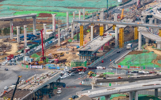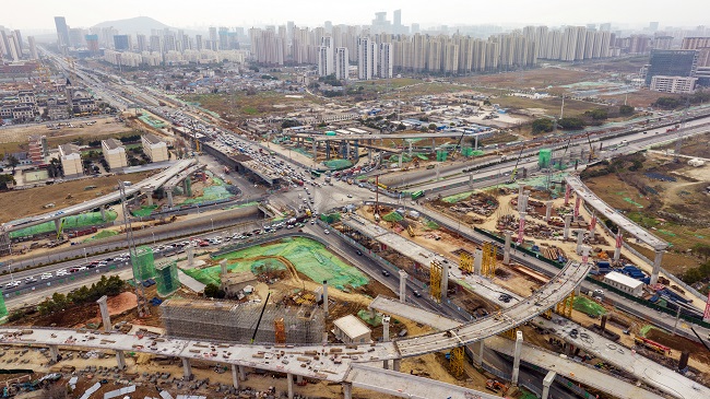 作為連通合肥與六安的交通要道,G312合六路(南崗鎮-侯店路)工程,全長(cháng)2.45公里,其中主線(xiàn)高架橋梁起點(diǎn)位于火龍地路以西,向東依次上跨火龍地路、方興大道后落地,工程范圍包含合六路主線(xiàn)高架橋梁(左、右分幅設置)及8條匝道橋梁。