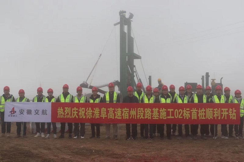 2月24日,伴隨著(zhù)鉆機隆隆的轟鳴聲,徐淮阜高速公路宿州段項目路基02標樁基首件順利開(kāi)鉆。