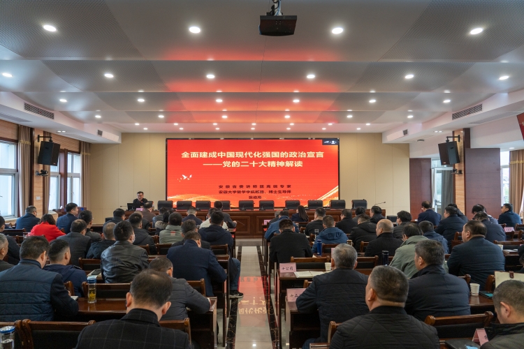 培訓中,裴德海以“全面建成中國現代化強國的政治宣言——黨的二十大精神解讀”為題,按照黨的二十大報告的序言、總論、分論、結束語(yǔ)的順序,理論聯(lián)系實(shí)際,從黨的二十大戰略定位、大會(huì )主題、實(shí)踐基礎、理論指導、基本路徑、根本保證和團結要求七個(gè)方面對黨的二十大精神進(jìn)行了全面、系統、生動(dòng)的解讀。