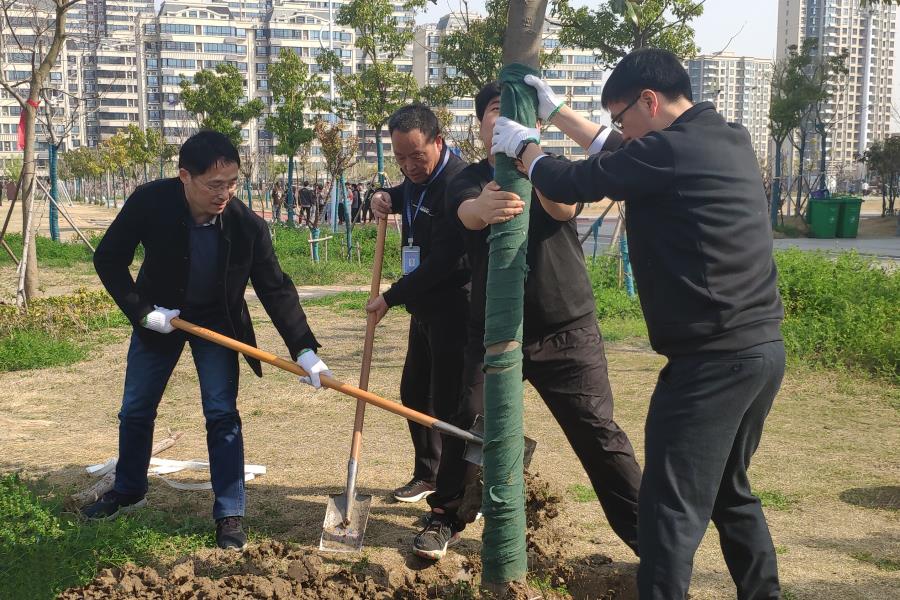 植樹(shù)現場(chǎng),學(xué)院領(lǐng)導與水湖師生代表一起揮鍬鏟土,培土澆水,為新春的水湖校區添新綠、扮新妝。參加植樹(shù)的人員三人一組、五人一群,通力合作,齊心協(xié)力,扶樹(shù)、鏟土、正苗,每個(gè)環(huán)節都緊湊有序,每位同志都干勁十足,呈現出一幅熱火朝天的勞動(dòng)場(chǎng)面。