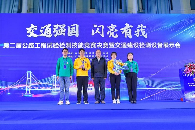 2023年3月25日,全國第二屆公路工程試驗檢測技能競賽決賽暨交通建設檢測設備展示會(huì )在廣西南寧舉辦。檢測公司喜獲團體第一名,張鵬、孫偉榮獲個(gè)人技能競賽亞軍,張鵬榮獲知識競賽亞軍,孫偉榮獲知識競賽季軍。