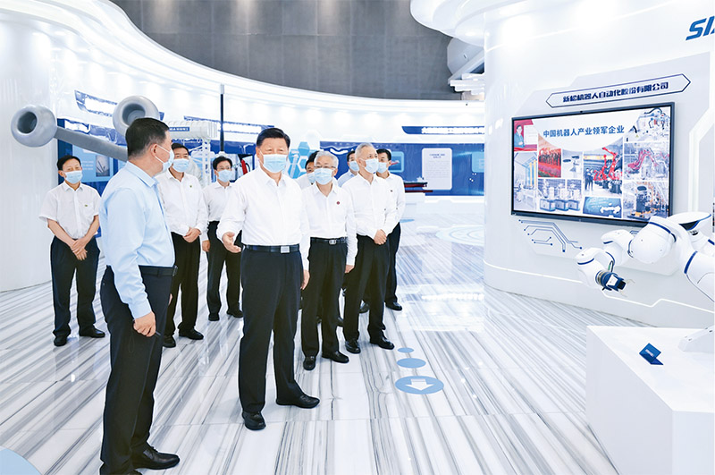 2022年8月16日至17日,中共中央總書(shū)記、國家主席、中央軍委主席習近平在遼寧考察。這是17日下午,習近平在沈陽(yáng)新松機器人自動(dòng)化股份有限公司展廳,了解公司生產(chǎn)經(jīng)營(yíng)、自主創(chuàng )新情況。 新華社記者 鞠鵬/攝