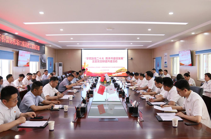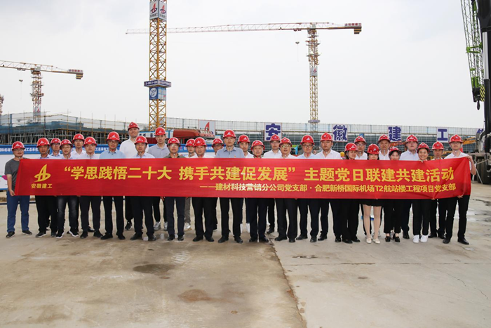 4月18日下午,合肥新橋國際機場(chǎng)T2航站樓工程項目部和建材科技營(yíng)銷(xiāo)分公司開(kāi)展“學(xué)思踐悟二十大 攜手共建促發(fā)展”主題黨日聯(lián)建共建活動(dòng),發(fā)揮黨建融合優(yōu)勢,助力項目提質(zhì)增效。