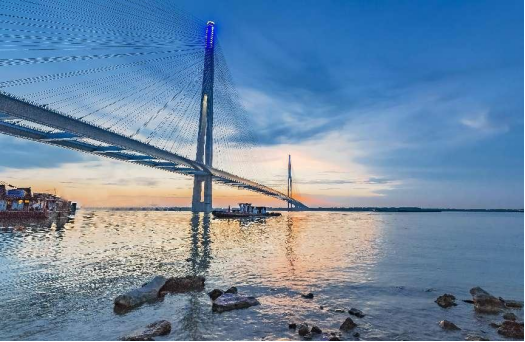 蕪湖長(cháng)江公路二橋位于安徽省蕪湖市,是國家高速公路網(wǎng)的關(guān)鍵樞紐,長(cháng)三角一體化發(fā)展的戰略通道。項目全長(cháng)55.5km,總投資67.9億元,橋隧比62.5%??缃鳂蜷L(cháng)1622m、索塔高262m,是全球首座超大跨徑分肢柱式塔四索面回轉拉索錨固體系斜拉橋,顛覆了人們對斜拉橋錨索體系的傳統認知。27.8km引橋及接線(xiàn)工程創(chuàng )新性采用全體外預應力拉索節段拼裝箱梁,開(kāi)創(chuàng )了國內最大規模橋梁工業(yè)化建造之先河。
