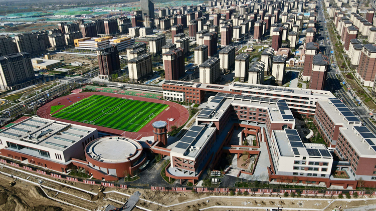 落成投用的新教學(xué)樓整體呈“U”字形,宛如一條臥龍,紅白相間的墻面與藍天白云相映生輝。教學(xué)樓旁,學(xué)校的“新客人們”在新建起的運動(dòng)場(chǎng)上舉辦升旗儀式,同學(xué)們腳下所踩的每一寸土地,目光所及的每一處建筑,都是由一群日夜奮戰的城市建設者的心血澆灌而成。