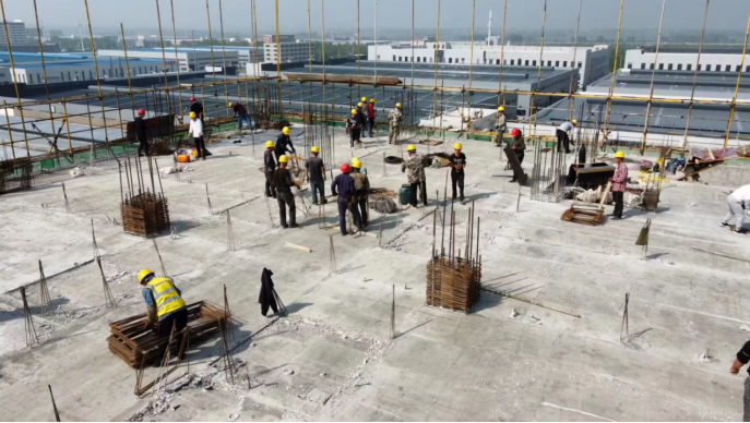 安徽建工二建第三分公司長(cháng)豐新能源汽車(chē)配套產(chǎn)業(yè)園項目總用地面積約200畝,總建筑面積為16萬(wàn)平方米,其中地上建筑面積為15.7萬(wàn)平方米,地下建筑面積約為3000平方米,施工內容主要包括7棟工業(yè)化廠(chǎng)房及一棟綜合樓,室外配套道路、給排水、供配電、景觀(guān)綠化等基礎設施工程等。目前項目1-7#廠(chǎng)房進(jìn)入收尾階段,確保在4月底完成單體全部工程量,具備單體竣工驗收要求;綜合樓八層主體結構搶工階段,確保5月中旬結構封頂。