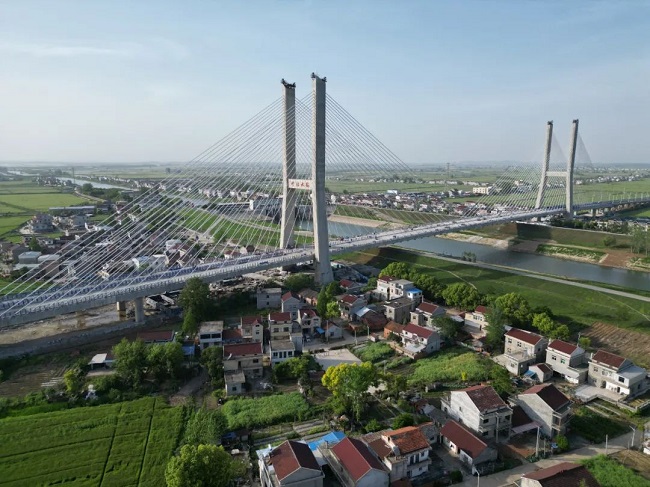 項目控制性工程楊灣河特大橋(望江大橋)全長(cháng)1322米,主跨365米,由685米雙塔預應力混凝土斜拉橋與637米東西引橋組成,主塔塔高110米,是安徽省在建同類(lèi)預應力鋼筋混凝土斜拉橋第二大跨徑橋梁,也是安徽建工集團目前承接單跨跨徑最大的橋梁工程。