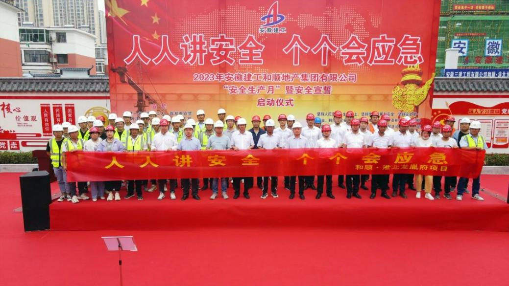 為深入學(xué)習貫徹落實(shí)習近平總書(shū)記關(guān)于安全生產(chǎn)重要論述精神,按照建工集團安全生產(chǎn)工作部署要求,6月1日,和順地產(chǎn)在淮北龍胤府項目舉行了2023年“安全生產(chǎn)月”啟動(dòng)儀式暨安全宣誓和應急演練。和順地產(chǎn)黨委委員、副總經(jīng)理后志國出席并講話(huà)。