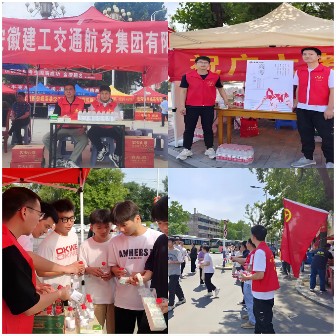高考期間,建工交航的志愿者們在考場(chǎng)附近設立了愛(ài)志愿服務(wù)站,為考生免費提供飲水、防暑藥品、考試用品、口罩、紙巾等物資,為考生提供暖心服務(wù)。
