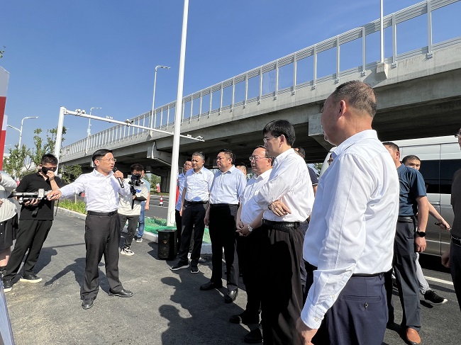 施工現場(chǎng),聶愛(ài)國一行詳細聽(tīng)取了項目工程概況、施工進(jìn)度、建設模式、建設周期等情況匯報,對項目建設取得的成績(jì)給予充分肯定,并進(jìn)一步了解了六安市目前交通建設規劃整體情況。