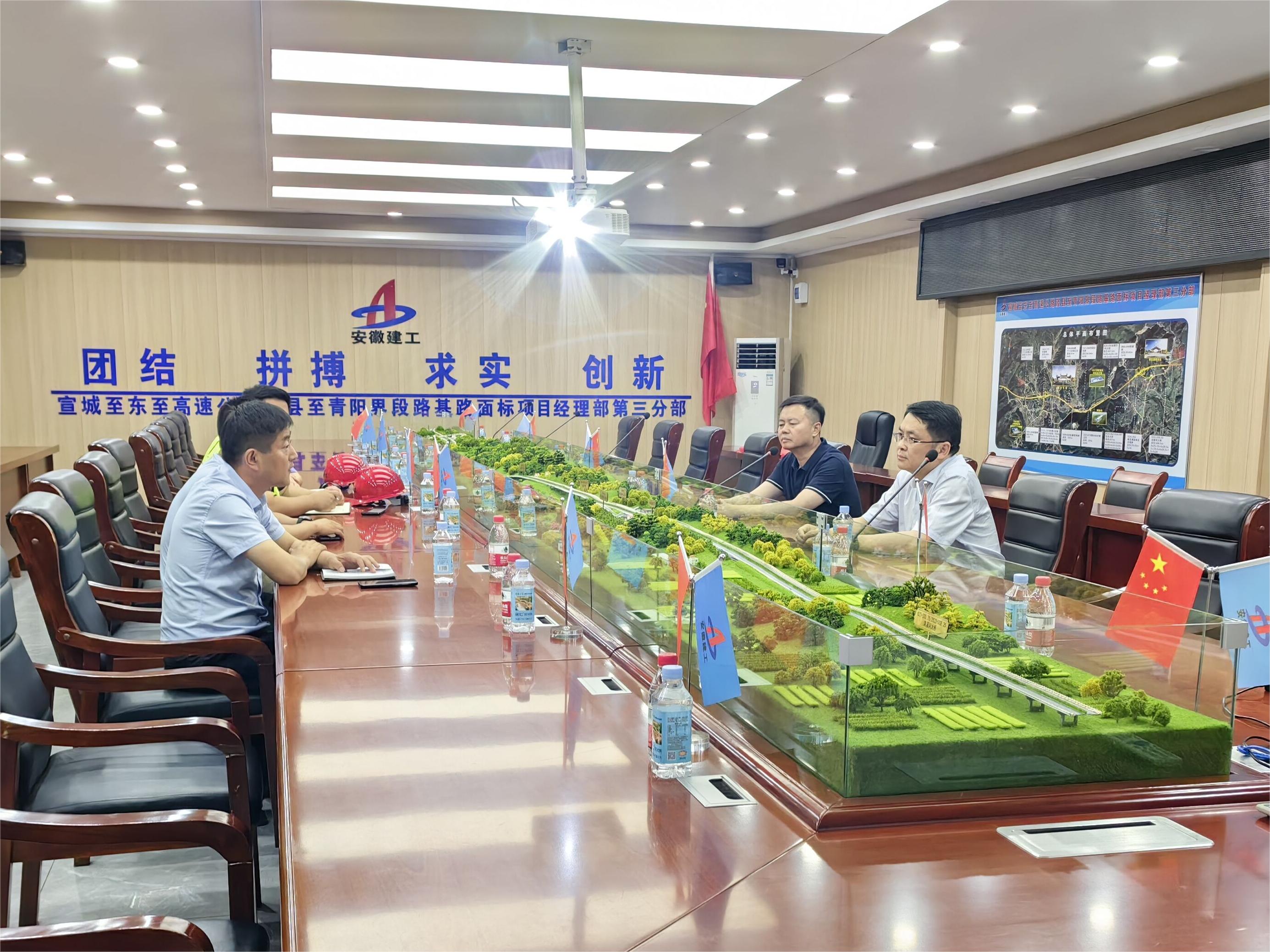 6月10日上午,建工路港黨委副書(shū)記、總經(jīng)理李建成,黨委委員、副總經(jīng)理錢(qián)玉寶一行至涇青高速項目調研指導工作。