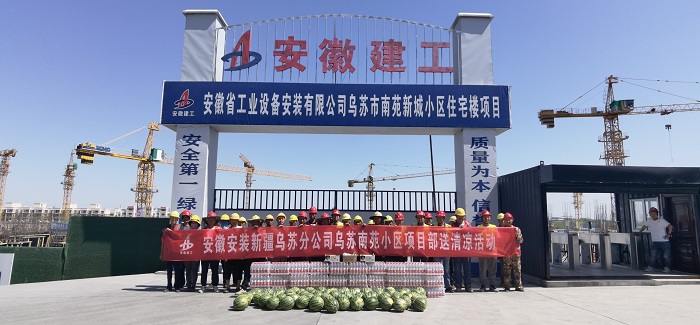 6月的新疆,烈日當頭、酷暑難耐,新疆烏蘇市氣溫一度沖破38℃,給一線(xiàn)施工人員帶來(lái)嚴峻的“烤”驗。為了確保烏蘇市南苑新城小區住宅樓建設項目施工進(jìn)度不滯后,項目部管理人員及一線(xiàn)工人斗烈日、戰酷暑,加班加點(diǎn)、揮汗如雨、搶抓進(jìn)度。近日,新疆烏蘇分公司南苑新城項目部組織“送清涼”活動(dòng),為一線(xiàn)工人送去礦泉水、西瓜、綠豆、冰糖、藿香正氣水、十滴水等防暑降溫物品,并叮囑他們高溫季節施工,一定保護好自己身體。