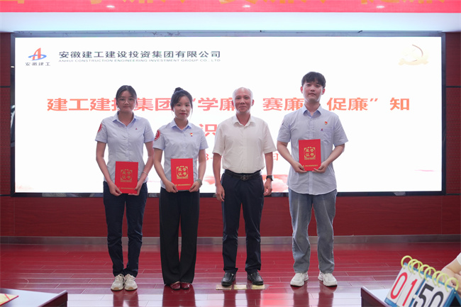 為扎實(shí)推動(dòng)企業(yè)廉潔文化建設,積極營(yíng)造組織倡廉、黨員護廉、干部守廉的濃厚氛圍,7月31日下午,建工建投集團紀委成功舉辦“學(xué)廉、賽廉、促廉”知識競賽決賽。公司董事、財務(wù)總監章興紅、黨委委員、紀委書(shū)記王學(xué)梅、工會(huì )主席邵康出席競賽并為獲獎選手頒獎。所屬各單位黨組織書(shū)記、黨群部門(mén)負責人到場(chǎng)觀(guān)摩。