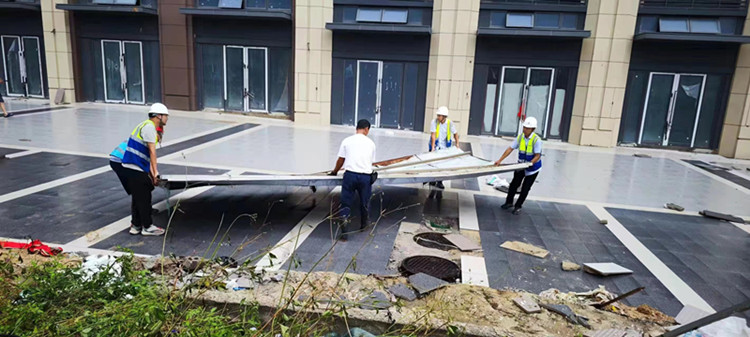 本次臺風(fēng)造成了項目積水嚴重、場(chǎng)地道路受損、現場(chǎng)圍墻倒塌等嚴重問(wèn)題,為排除各類(lèi)安全生產(chǎn)隱患,保障職工群眾生命財產(chǎn)安全,7月30日,項目全體管理人員迅速行動(dòng),搶修受臺風(fēng)暴雨損毀的道路、臨電設施、圍擋等,并加強災后環(huán)境消殺、道路清障、積水清理等,全力開(kāi)展災后恢復工作。