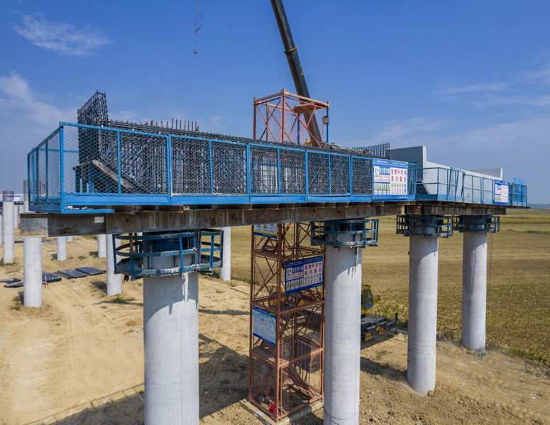 除此此外,還總結推廣了護欄臺車(chē)及夾芯板斷縫施工、下部結構施工安全防護、緊鄰國防光纜樁基施工三項新技術(shù)。護欄臺車(chē)及夾芯板斷縫施工技術(shù)提供了一種護欄模板調整和混凝土澆筑工作平臺裝置,操作簡(jiǎn)便,保障了高空作業(yè)人員的安全;下部結構施工安全防護技術(shù)提供了一種墩柱、蓋梁安全施工方法,通過(guò)定制安全梯、作業(yè)平臺、鋼管支架形成臨邊防護,施工快捷,安裝方便;緊鄰國防光纜樁基施工技術(shù)提供了一種孔口雙層護筒預埋保護既有管線(xiàn)的施工方法,最大程度降低對周邊干擾。