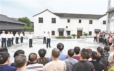 隨后,習近平乘車(chē)來(lái)到位于紹興的浙東運河文化園考察。他步行察看古運河河道和周邊歷史文化遺存,詳細了解浙東運河發(fā)展演變史和當地合理利用水資源、推進(jìn)大運河保護等情況。習近平強調,大運河是世界上最長(cháng)的人工運河,是十分寶貴的文化遺產(chǎn)。大運河文化是中國優(yōu)秀傳統文化的重要組成部分,要在保護、傳承、利用上下功夫,讓古老大運河煥發(fā)時(shí)代新風(fēng)貌。