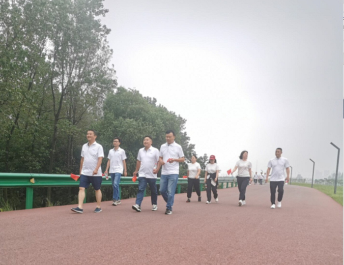 上午7點(diǎn)50分,全體參賽員工沿著(zhù)安廣江堤步行,全程約8公里。按照參賽人數編排了4個(gè)隊,每隊設隊長(cháng)一名,整個(gè)賽程中大家互相扶持協(xié)作,堅持不落下每一位同志,路程上充滿(mǎn)著(zhù)歡聲笑語(yǔ),揮舞著(zhù)紅旗,歡唱著(zhù)激揚的歌聲為即將到來(lái)的“雙節”慶賀。