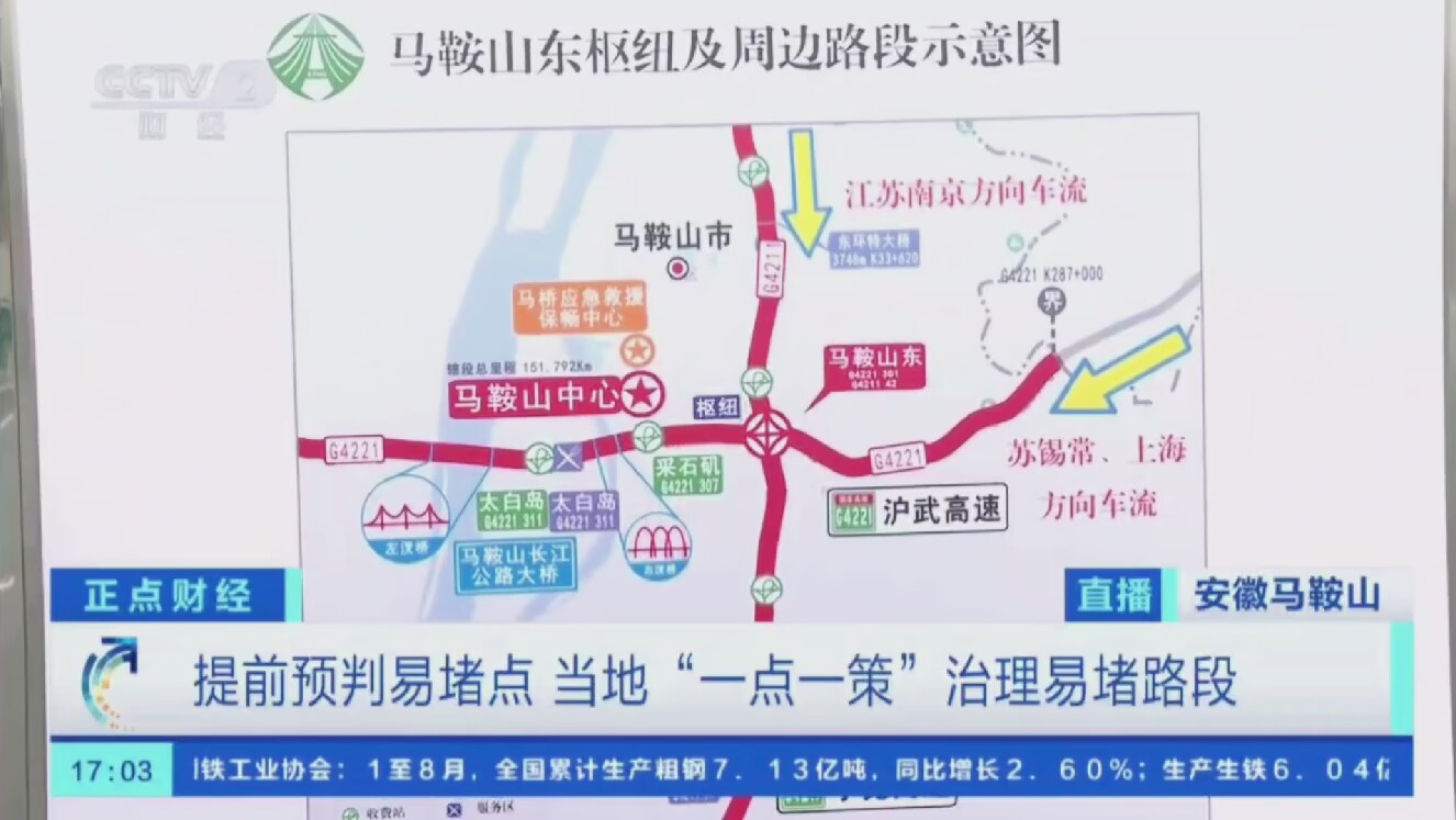 9月28日下午,CCTV2央視財經(jīng)頻道《正點(diǎn)財經(jīng)》欄目對建工路港寧蕪01標項目馬鞍山東樞紐導改通行情況進(jìn)行現場(chǎng)直播報道。