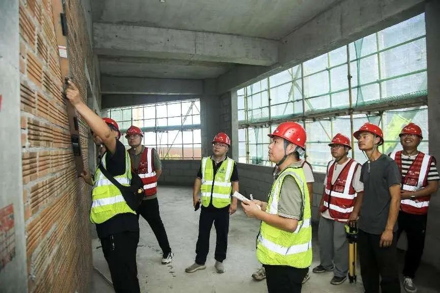 蚌埠公司質(zhì)量檢查組對懷遠荊山學(xué)校項目墻面平整度測量