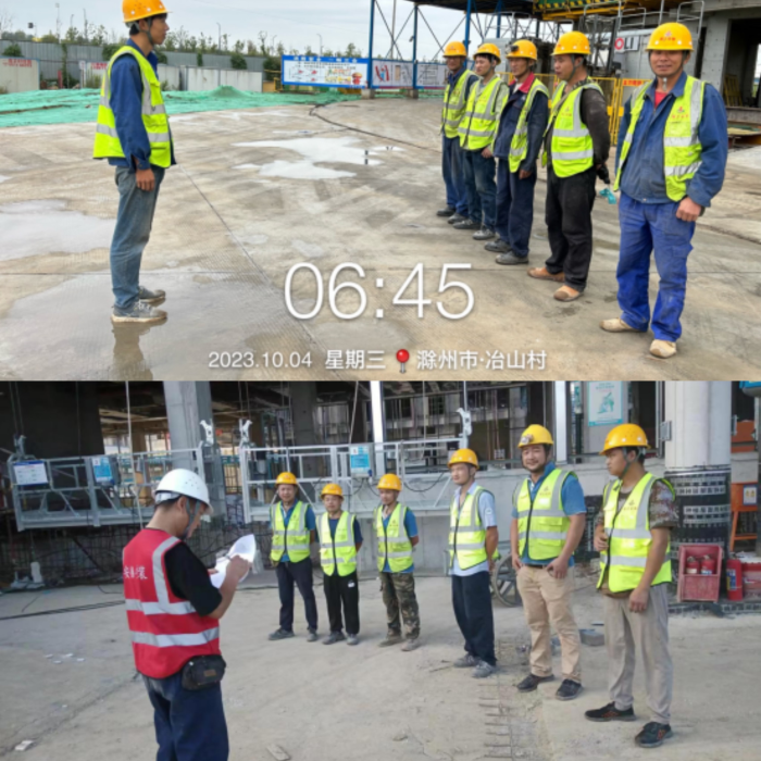 桃花科創(chuàng )項目、滁州天長(cháng)項目在節假日期間,在崗施工作業(yè)人員,用自己的實(shí)際行動(dòng)表達著(zhù)對工作的熱愛(ài),他們堅守崗位,堅持每日晨會(huì )開(kāi)展電梯安裝知識培訓,強化安全防范意識,力求“安全第一”,保障安全與質(zhì)量,全力確保項目的安全平穩運行。