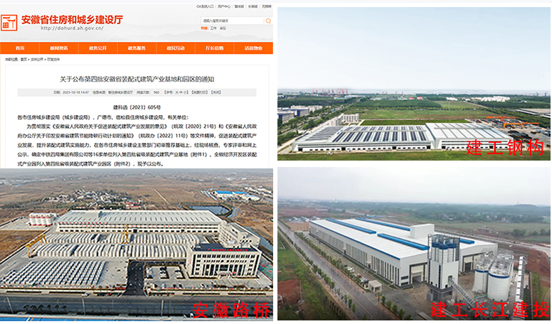 近日,省住建廳發(fā)布《關(guān)于公布第四批安徽省裝配式建筑產(chǎn)業(yè)基地和園區的通知》,集團公司所屬安徽省公路橋梁工程有限公司、安徽建工鋼構智能制造有限公司、安徽建工長(cháng)江建投建筑工業(yè)有限公司3家單位入選。