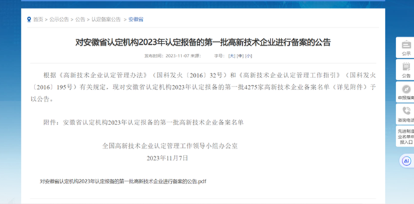 近日,由全國高新技術(shù)企業(yè)認定管理工作領(lǐng)導小組辦公室發(fā)布的《對安徽省認定機構2023年認定報備的第一批高新技術(shù)企業(yè)進(jìn)行備案的公告》中,安徽建科城鄉設計院成功上榜,獲批“高新技術(shù)企業(yè)”認定,正式邁入國家高新技術(shù)企業(yè)行列。