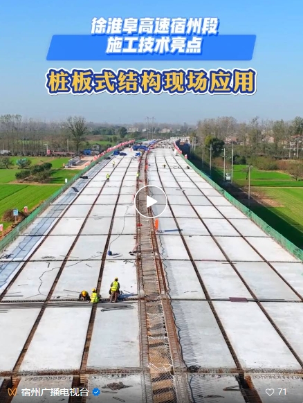 近日,宿州市廣播電視臺官方視頻號對建工建投集團徐淮阜高速宿州段項目路基施工技術(shù)亮點(diǎn)——樁板式結構現場(chǎng)應用展開(kāi)報道。