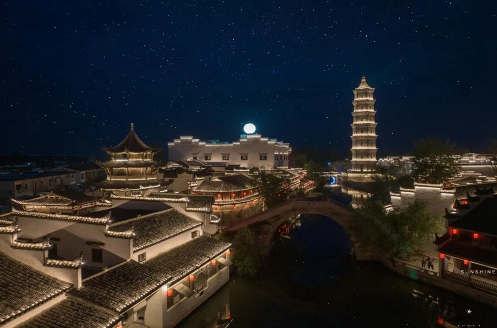 在安徽銅陵市義安區西聯(lián)鎮犁橋村,有這樣一個(gè)古鎮,因夜景的瑰麗璀璨,被譽(yù)為“安徽版大唐不夜城”,它就是犁橋水鎮景區。近日,記者隨“2023網(wǎng)聚美好安徽”采訪(fǎng)團夜訪(fǎng)犁橋水鎮景區,以航拍影像等方式展現古韻犁橋的夜景之美。