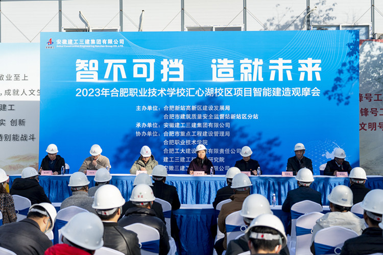 12月7日上午,由合肥新站高新區建設發(fā)展局、合肥市建筑質(zhì)量安全監督站新站區分站主辦,安徽建工三建集團有限公司承辦的“智不可擋 造就未來(lái)”智能建造觀(guān)摩活動(dòng)在合肥職業(yè)技術(shù)學(xué)院建設項目順利舉行,新站高新區建筑質(zhì)量安全監管中心主任許冬至、新站高新區各施工單位相關(guān)負責人約50余人參加觀(guān)摩會(huì )。