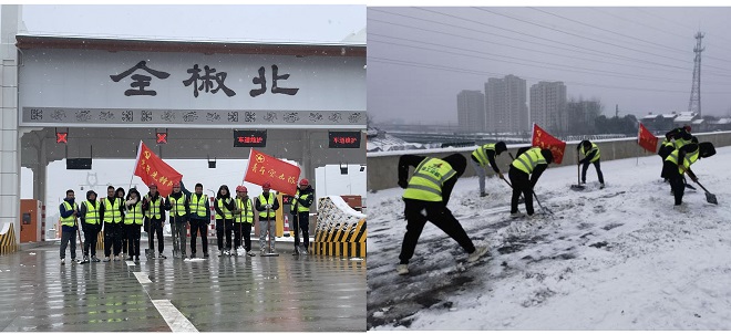 全椒建投成立“青年臨時(shí)突擊隊”清掃全椒北互通立交項目上跨合寧高速橋面積雪。