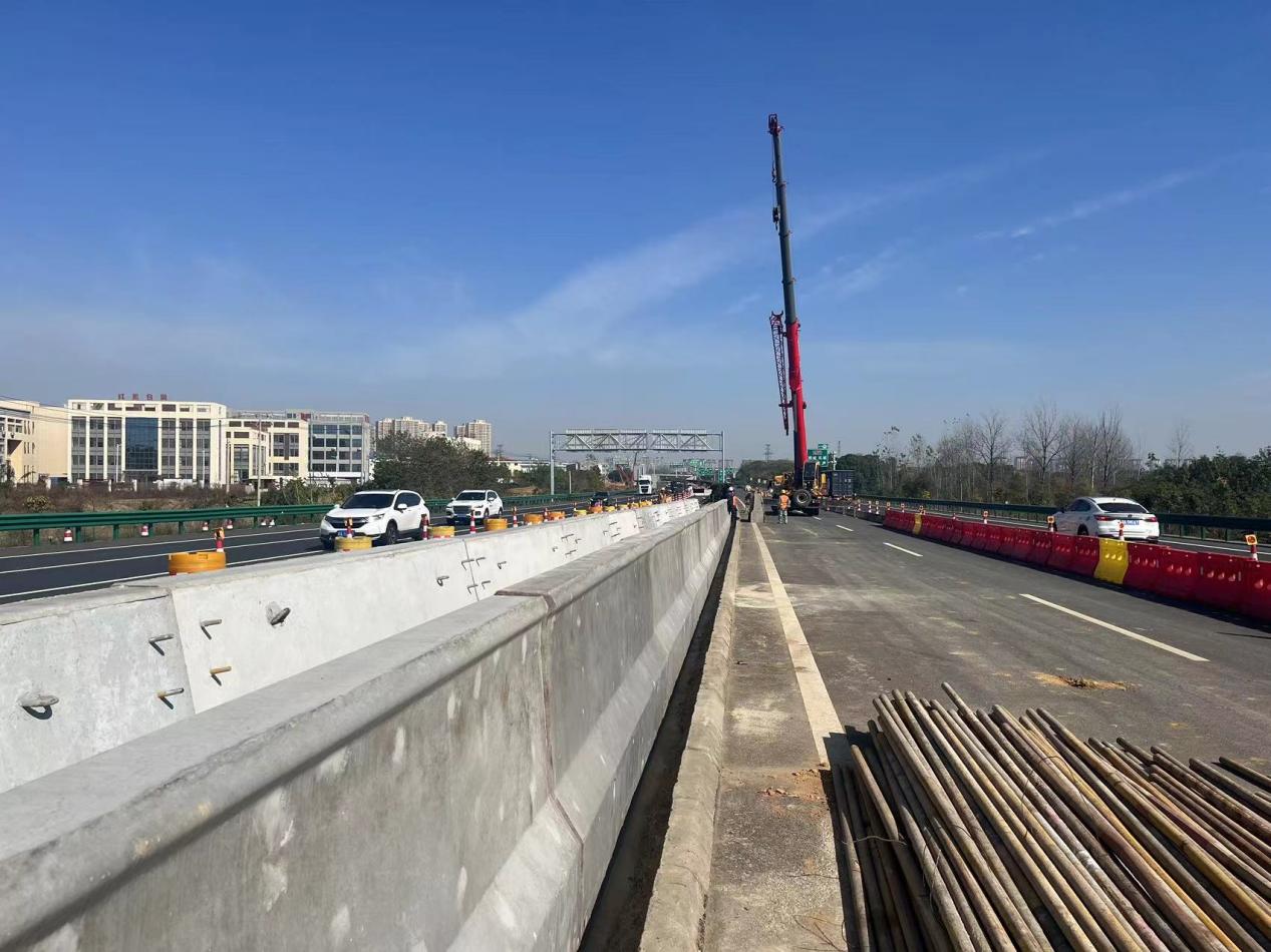 桐城大建設施工現場(chǎng)正在緊張施工中,和平東路上跨橋施工負責人在積極組織工人們有條不紊地安裝隔離柵,為途經(jīng)合安高速公路的歸家旅人提供一道安全屏障。