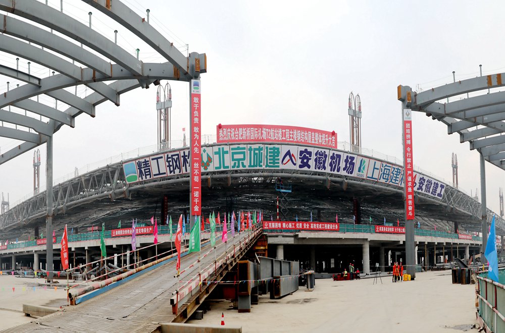 合肥新橋國際機場(chǎng)改擴建工程是國家和安徽省“十四五”重點(diǎn)工程,T2航站樓是改擴建工程的亮點(diǎn)項目,由安徽建工和北京城建聯(lián)合施工總承包,既是安徽省重大民生工程,也是打造“翅膀上的安徽”、建設長(cháng)三角世界機場(chǎng)群的有力舉措。自項目開(kāi)工建設以來(lái),安徽建工與北京城建通力合作,和各參建方分工協(xié)作,在機場(chǎng)集團、工程建設指揮部、上海建科公司等相關(guān)各方大力支持下,高標準、高質(zhì)量、高效率推進(jìn)項目建設。2023年2月26日,負責施工的北指廊共同溝結構工程提前封頂;6月5日,鋼結構屋蓋梁“首吊”順利完成;8月26日,提前兩個(gè)月實(shí)現混凝土主體結構封頂目標。