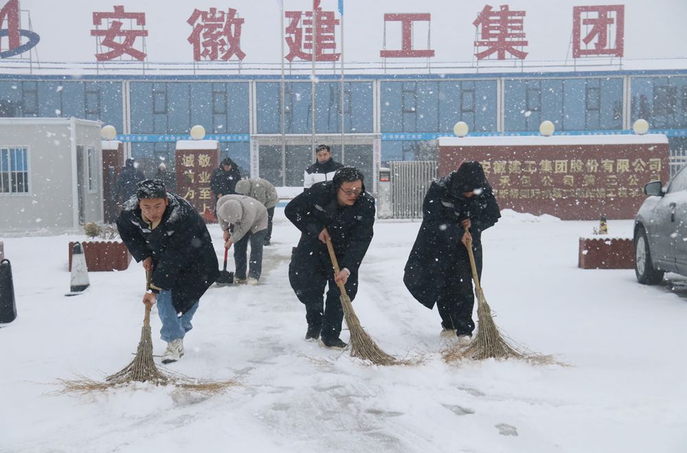 2月4日,舒城建投(六安公司)機關(guān)及項目部組織員工對辦公駐點(diǎn)及施工現場(chǎng)道路進(jìn)行鏟冰除雪,黨員及團員同志當起掃雪除冰主力軍,為員工出行掃出一條“平安路”。