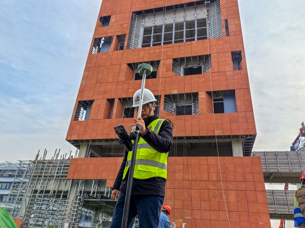 “星光不負趕路人,時(shí)代眷顧奮楫者,合肥一中淝河校區項目管理人員將全力確保項目實(shí)現圓滿(mǎn)交付!”技術(shù)總工張國田正在使用GPS復核室外景觀(guān)坐標點(diǎn)。