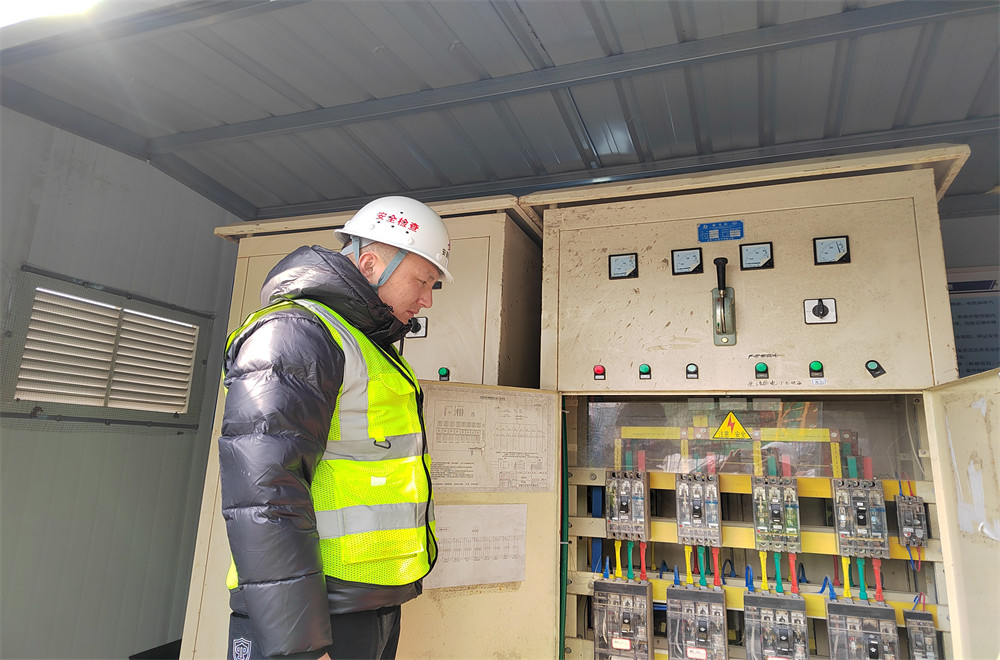 “工人兄弟還堅守在項目,守護他們平安過(guò)年是我們新年愿望?!卑踩珕T李豐懷在巡視現場(chǎng)用電安全。