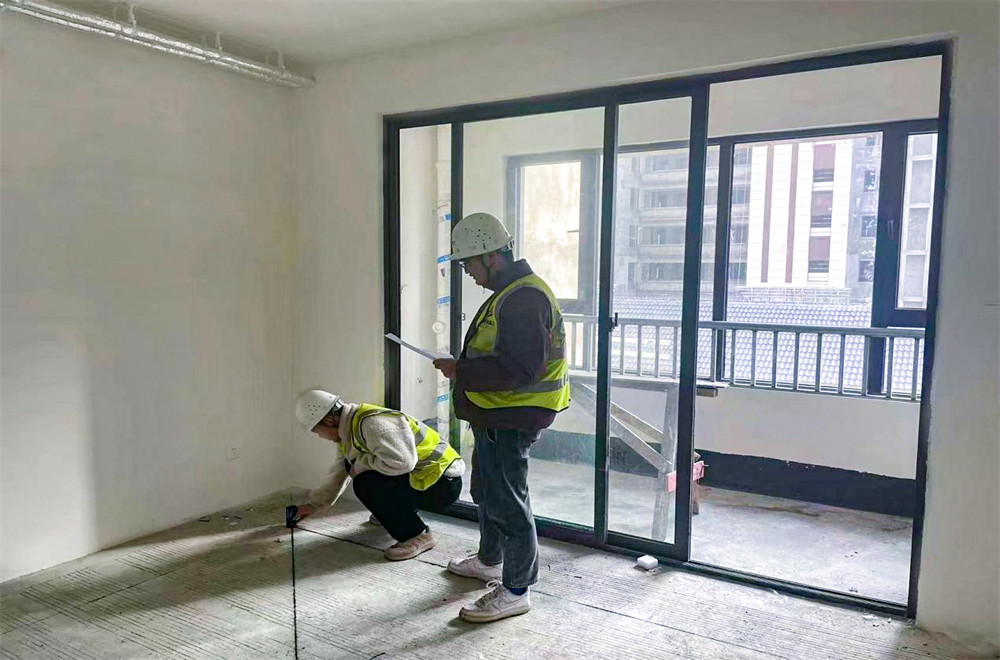 “每一次、每一處的細節檢查,都是對工程質(zhì)量的保障,我們還年輕,春節期間在項目上多學(xué)多看,站好最后一班崗?!奔夹g(shù)員程繼鏖、秦志平正在進(jìn)行一戶(hù)一表技術(shù)復核檢查。