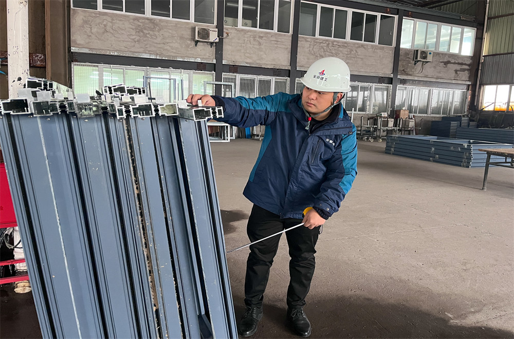 “保障產(chǎn)品質(zhì)量,為項目的整體建設添磚加瓦,是我們門(mén)窗義不容辭的責任?!奔夹g(shù)質(zhì)量科副科長(cháng)徐暉正在驗收項目門(mén)窗制品。
