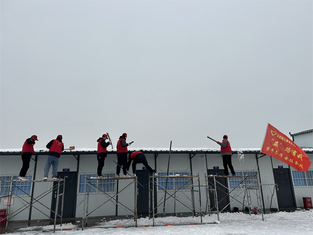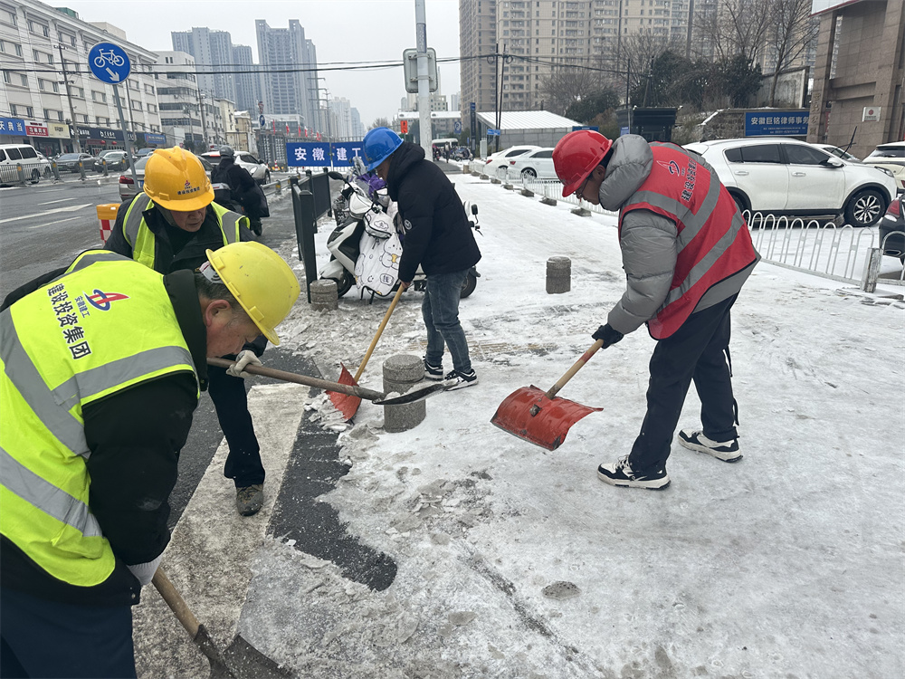 除了安徽省內,公司所屬山東德州天衢項目也積極發(fā)動(dòng)項目班子及普通員工共15人,使用鐵鍬、掃把、參與駐地及施工現場(chǎng)除雪活動(dòng),保障過(guò)往行人的出行安全。