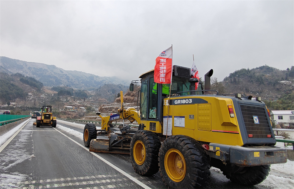 為有效應對冰雪天氣,保障沿線(xiàn)居民交通暢通,廬江二軍路項目人員冒嚴寒、戰風(fēng)雪,緊鑼密鼓開(kāi)展除雪保暢工作,多措并舉保障公眾出行安全。在除雪保暢工作中,項目人員通過(guò)機械除雪、撒布融雪劑、加熱路面等,以加速雪層的融化,確保道路暢通。
